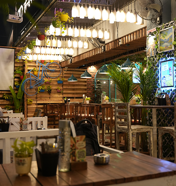 A café and bistro by day, and a diner-pub by night. We serve Mediterranean and continental dishes with intuitive Indian touches, brought to life by our front-row wood-fired oven, tap-forward bar, and colour-rich spaces inspired by the Hippie Trails.